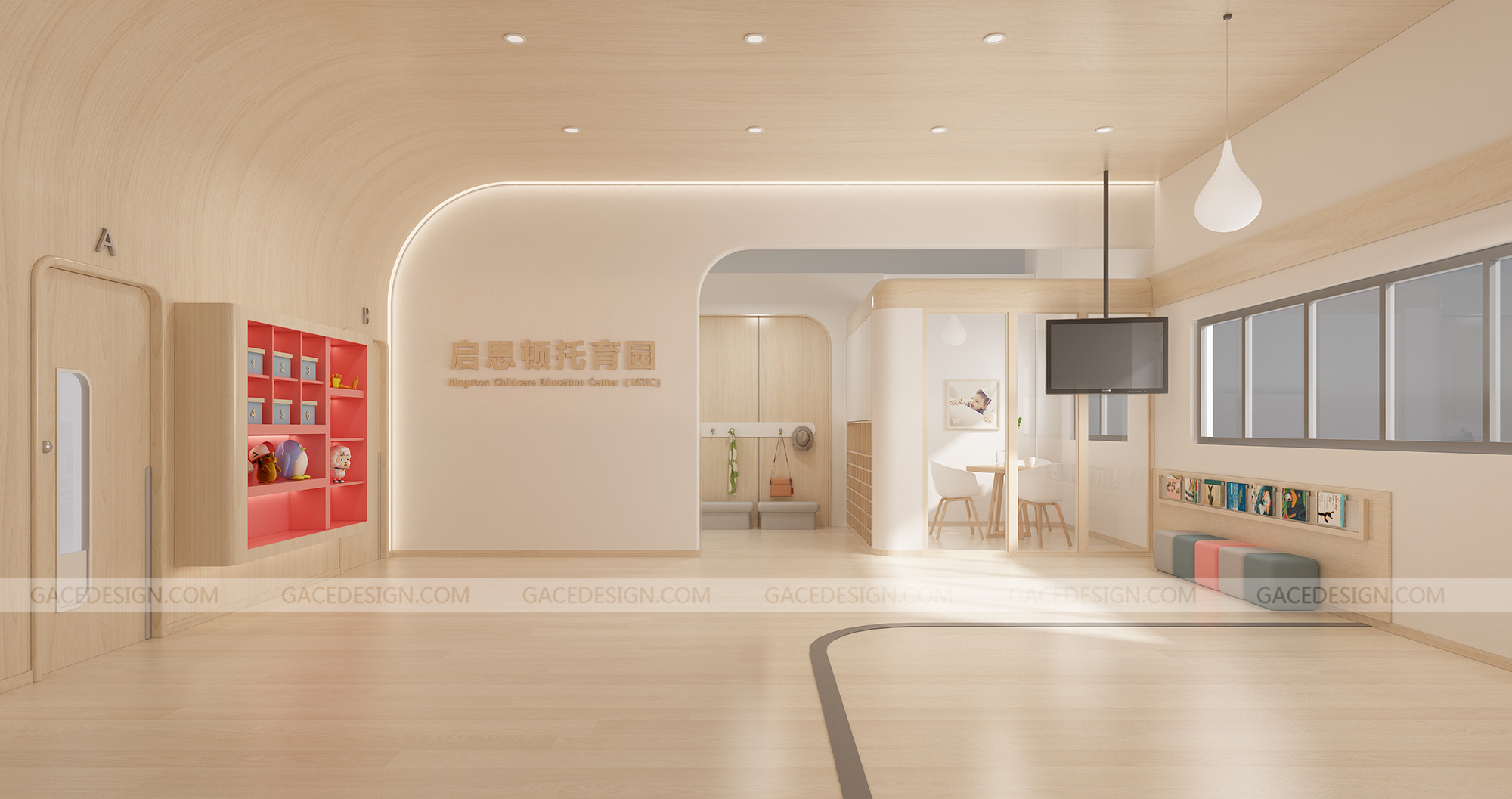 設計概括:這是我們幫啟思頓托育園設計的旗艦店,面積達到1000平以上,作為中山市高標準的示范性托育園,我們在設計之前組織設計師進行跟崗觀察,學習守護型嬰幼兒保育等系列保育書。考慮到保育員在操作層面上的便捷性,我們進行了場景模擬,把操作層面所涉及的柜體以及路徑進行了系統性整理。考慮到嬰幼兒在保育園的心理狀態以及發展心理學和空間敏感,我們定位這個項目是孩子的第二個家。是一家值得爸爸媽媽愿意托付的托育園。