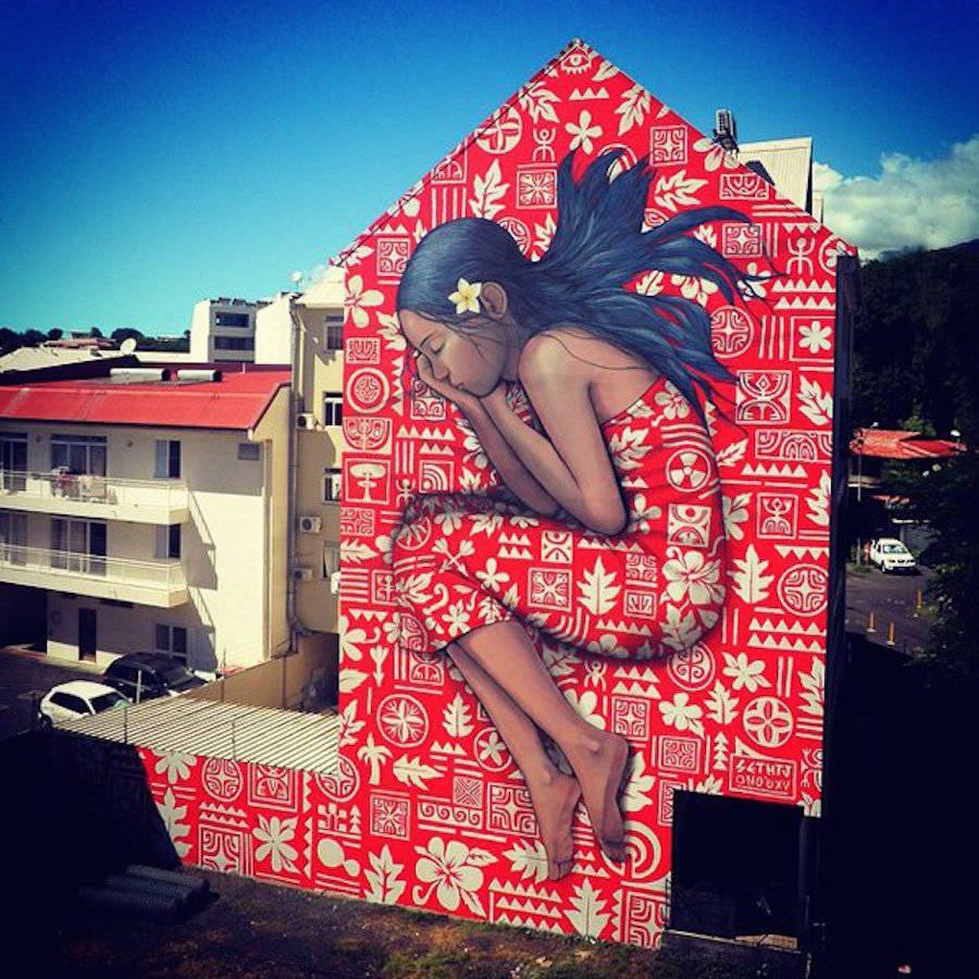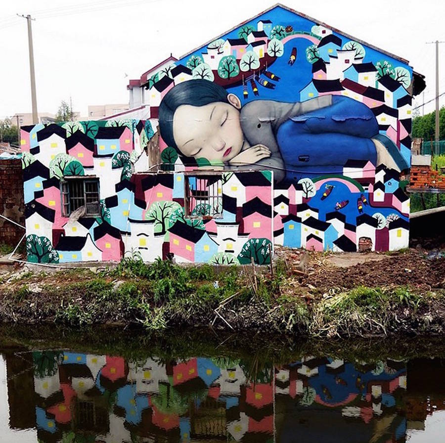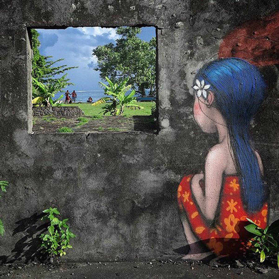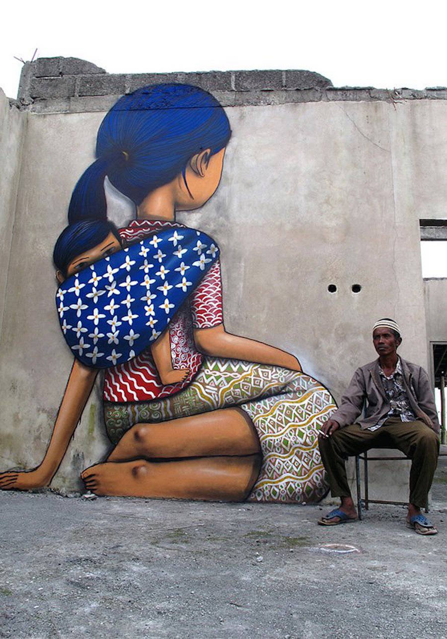 國際知名的法國巴黎街頭藝術家Julien Seth Malland(又名Seth Globepainter),Julien Set Malland的作品通常包含著憂郁的兒童和彩虹這兩個元素。作品所展示的畫面,觸動視覺。他們背對著大眾,背對著整個城市,注意力完全被艷麗的色彩所吸引,直至融入其中,不為所動。