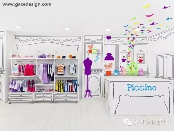 一個新的兒童服裝店開在西班牙的瓦倫西亞科學城,Piccino是一家以卡通為主題的兒童服裝概念店,很Q很萌的墻面設計,猶如雨后春筍般生機勃勃。