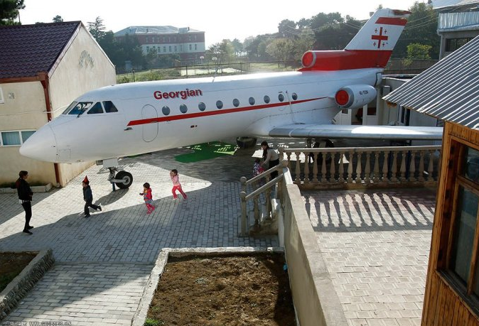 在格魯吉亞有一座幼兒園可以說是世界上獨一無二的一所幼兒園,因為這個幼兒園是格魯吉亞魯斯塔維市的加里?查皮茲在格魯吉亞航空購買的一架雅克-42型客機飛機去改造成的一所幼兒園。盡管這架飛機老舊了但飛機仍能工作,經過改造在機艙內安裝了游戲設計玩具和教育器材,把有1500個按鈕的駕駛艙儀器保留作為游戲的道具。