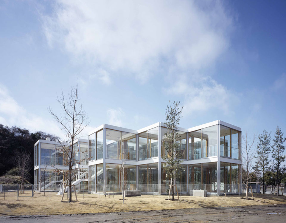 橫濱市一片美麗的森林高地的一塊空地上被用來建筑基督教會學習,其中一層作為幼兒園,二次則是高年級學校,位于森林四周肯定是有美麗的自然環境的,所以怎么去最大限度的發揮這個優勢是設計師展開幼兒園設計的個需要考慮的,因此設計師設計了一個向著四周全面開放的透明建筑,而且還在建筑的布局中在院子內種植著綠樹,園內院外的綠植相映形成一道靚麗的風景。