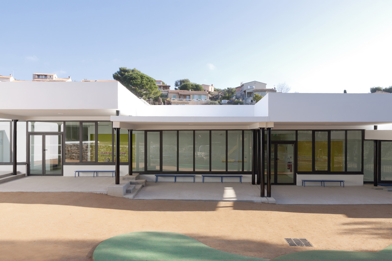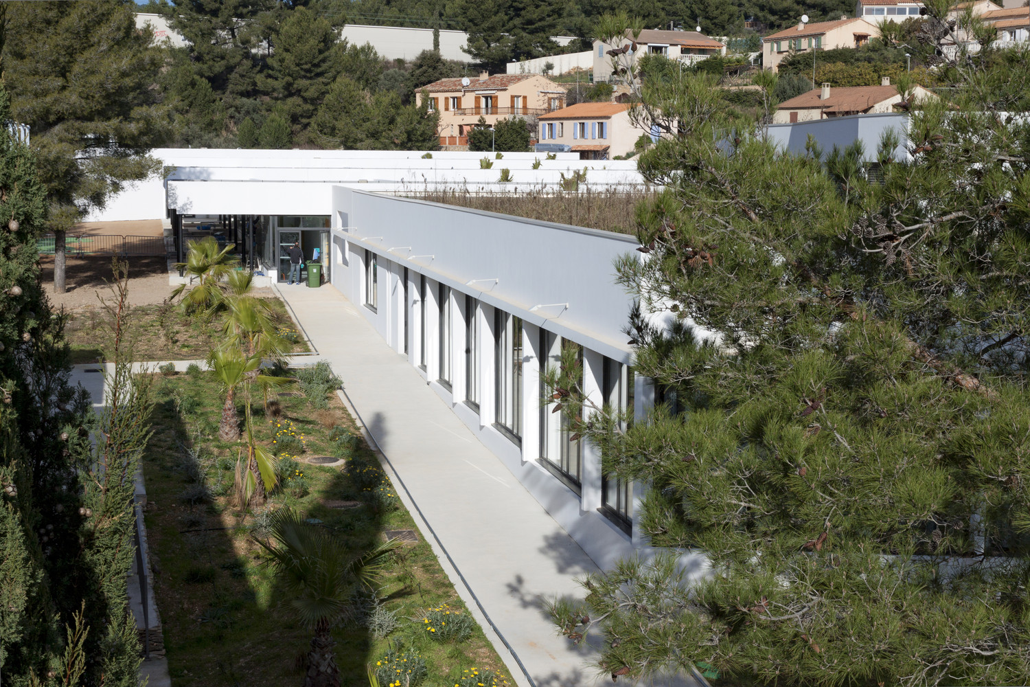 位于法國(guó)的Les Severiers幼兒園這個(gè)幼兒園設(shè)計(jì)包括著三個(gè)部分,一個(gè)食堂和在Ciotat的住宅區(qū)內(nèi)的城市化發(fā)展。園方的想法是建造一個(gè)可以使它融入到現(xiàn)存的松樹(shù)林中這樣的幼兒園。幼兒園的不同體積微妙地形成了一個(gè)緩坡,這可以在學(xué)校中形成天然的間隔。