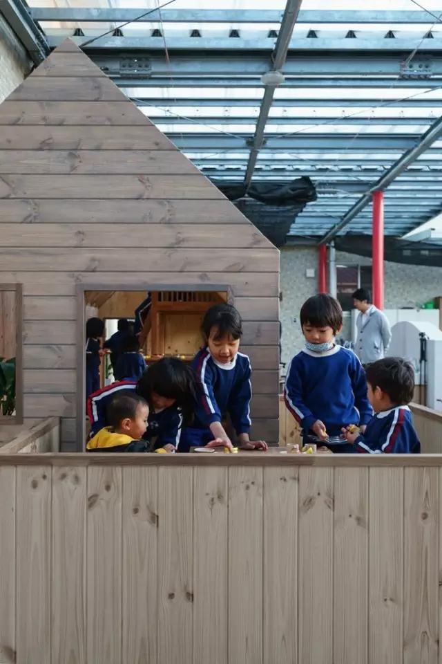“Ouchi”通過各種角色扮演活動來培養孩子的創造力和想象力。此外,在建造時還帶孩子們到場地上參觀,讓他們親身接觸和感受木匠的工作。由此設計者還挑戰了傳統的方法,讓孩子們近距離接觸成人的工作,創造機會來增加孩子們好奇與探索的可能性。(幼兒園室內設計)