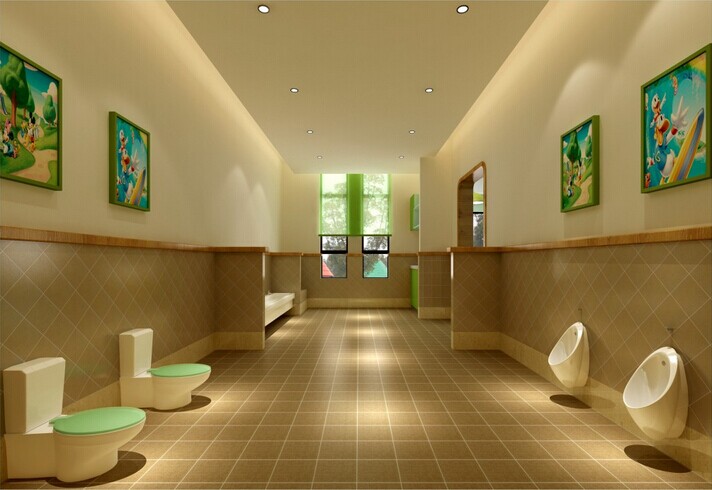 幼兒園室內設計中,幼兒園的衛生間裝修設計也是一個著重點,在衛生間設計上,主要是包括了盥洗區和廁所區兩大塊,盥洗區有序的工作程序,有效促進兒童掌握生活技能和自我衛生的處理能力。內設有符合兒童特點的洗手臺、毛巾架、污水池、鏡子、淋浴、清潔柜等設施。廁所是孩子們使用頻繁的生活用房,孩子們可以通過上衛生間的行為去養成良好的大小便習慣,學會自理。廁所便池應男女分隔,內設有符合幼兒年齡特點的大便槽、小便槽。