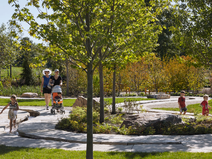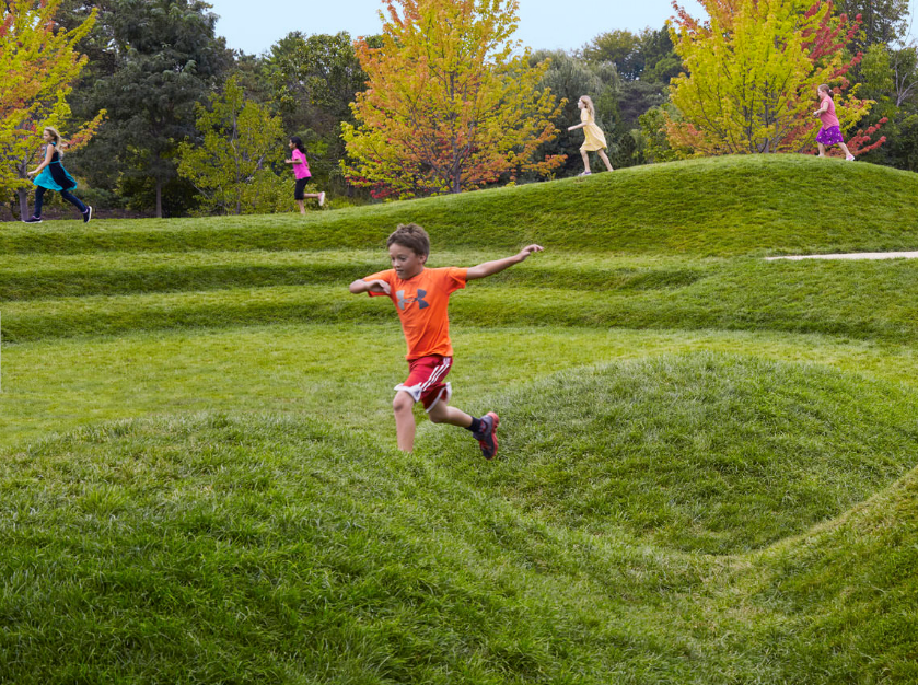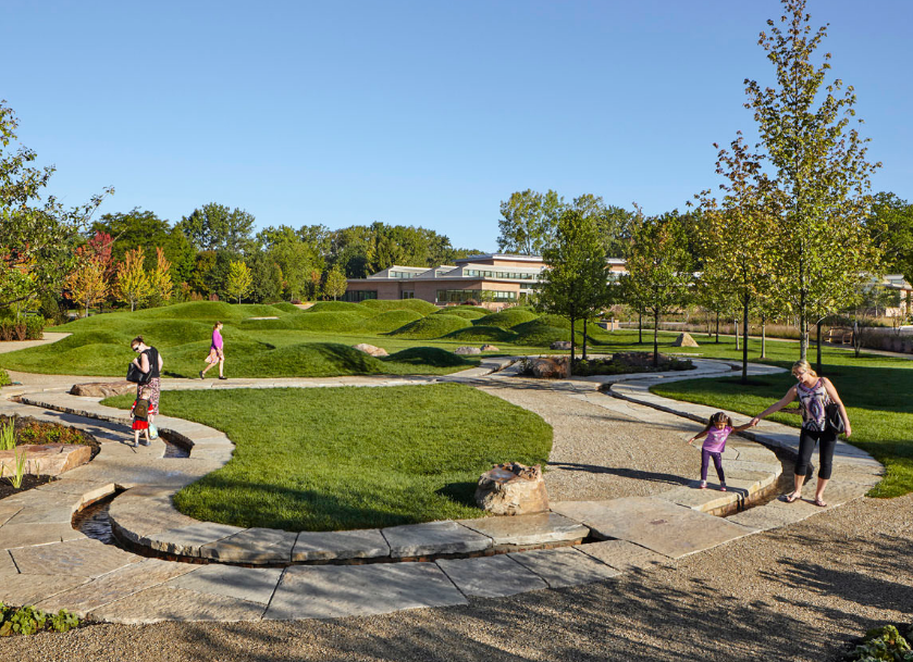 雷根斯坦學習園區(qū)是芝加哥植物園新設的環(huán)境探索中心和自然游樂場。這個占地六英畝的園藝園區(qū)作為科學園藝中心,為充滿活力的家庭社區(qū)服務,提供與自然環(huán)境的互動體驗,每年游客量超過12.5萬人。該設計促使家庭和各年齡段兒童參與豐富的戶外體驗,例如以探索為導向的學習和游戲,從而更深入了解生態(tài)系統(tǒng)。廣闊的花園提供各種自然體驗和探索活動,游客穿梭在草地、戲水小路、石塊、多樣的林地種植和柳枝隧道中。這個再生工程被設想為通向自然世界的門戶,一年四季提供探索與創(chuàng)造的機會。