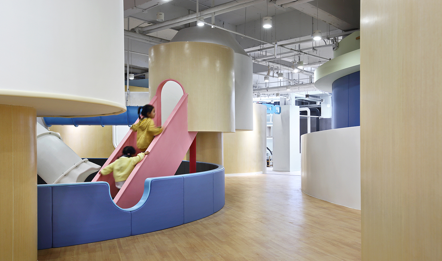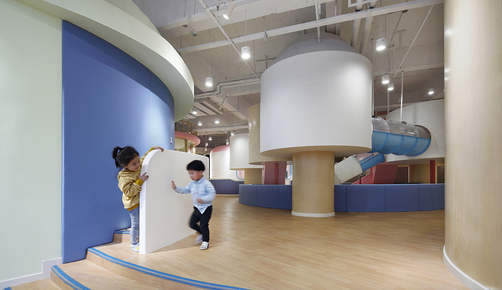 游戲是孩子的活力之源,也是孩子通往世界的途徑。設(shè)計(jì)師將游樂區(qū)布局在室內(nèi)的中心位置,讓孩子的歡聲笑語激活整座“城”。孩子們會帶著好奇和期待爬上梯子,穿過可愛的小木屋,在管道中匍匐前進(jìn),然后“咻”地一下滑入下沉的球池,在不斷變化動作和愉悅的體驗(yàn)中獲得身心的鍛煉和能力的發(fā)展。