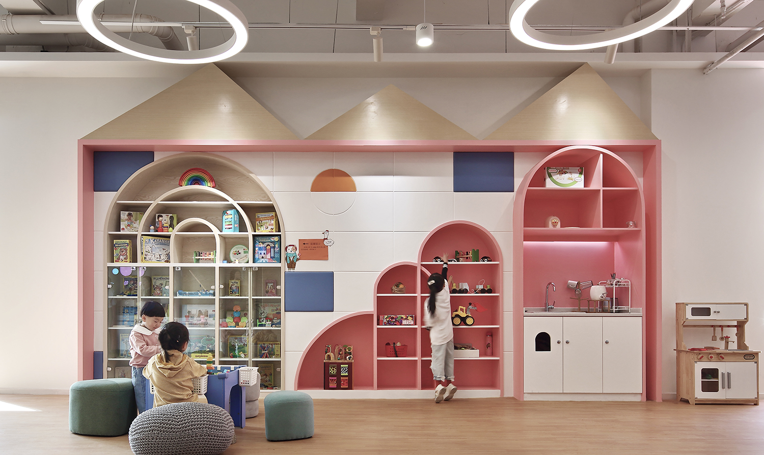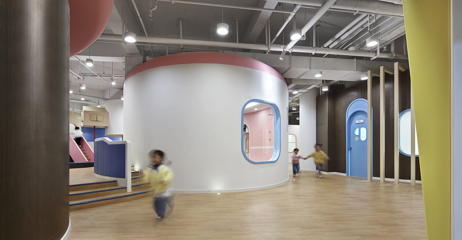 場地總面積有2000㎡,充分的條件讓我們能夠?qū)ⅰ俺鞘薪ㄖ边@個宏觀的概念和很多設(shè)想落地。如果將番趣兒童成長中心看作一座城,我們該怎樣去搭建城市?